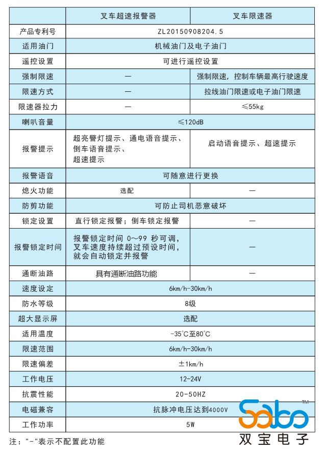叉车超速报警器,是双宝电子SP02A系列的一款产品。其主要原理是利用微电脑程序采集叉车工作各项信息,有效提醒驾驶人员或控制叉车行驶速度,在保证叉车高效工作的同时又能预防超速行驶带来的安全隐患。