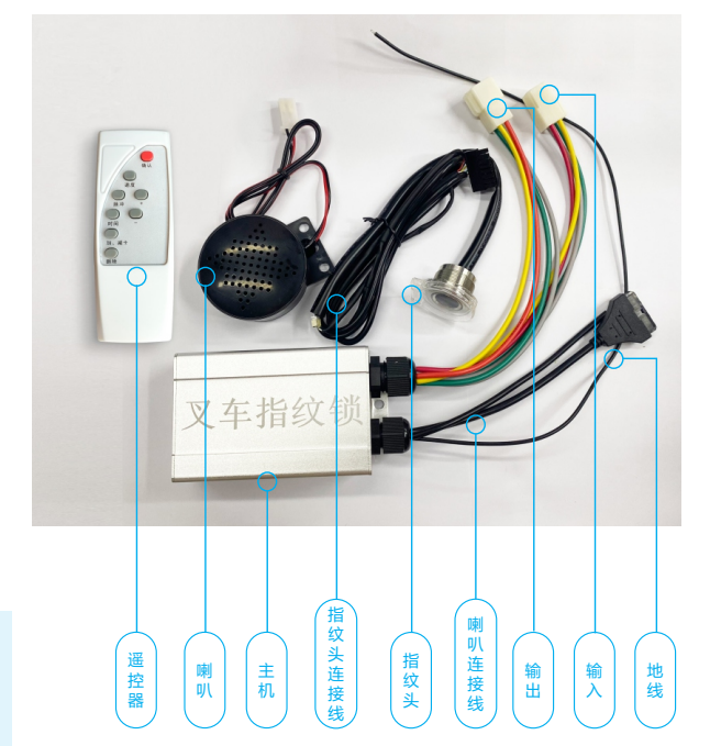 双宝叉车指纹锁,实现了一键启动车辆、一键熄火车辆。从远看它可以是一个方便开启车辆的配件,从近看它可以是一个保护安全,减少安全隐患的系统。