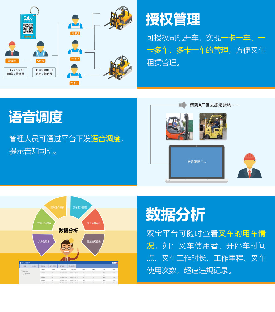 经过以上的讲解,相信大家已经清楚叉车效率高效对企业的重要性,使用双宝智能叉车系统之后,可以实现叉车的安全管理,同时也能实现叉车的高效作业。