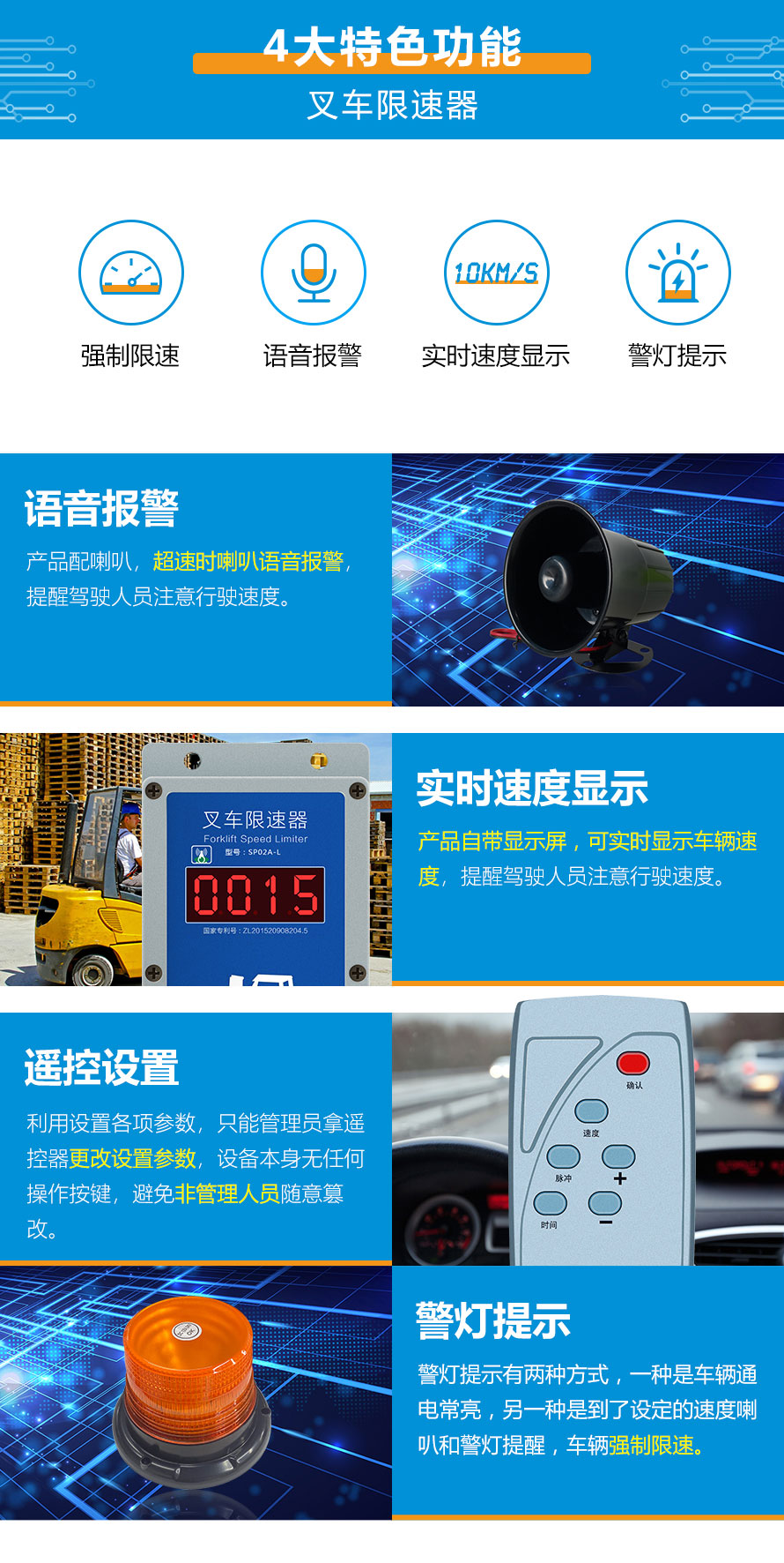 叉车限速器利用微电脑程序采集叉车工作各项信息,有效提醒驾驶人员或控制叉车行驶速度,在保证叉车高效工作的同时又能预防超速行驶带来的安全隐患。咨询热线:4006-520-818