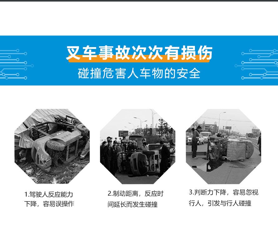 为了让厂区叉车能够安全、高效 的工作。叉车视频防撞系统能够帮助司机实时观察周围,当有 人经过时发送语音警报,并在显示屏上显示, 提醒司机注意安全。